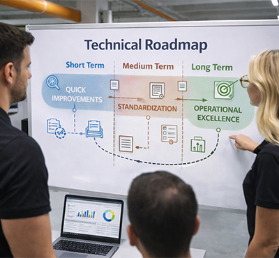 Teknik yol haritamız; kısa vadede hızlı iyileştirmeler, orta ve uzun vadede ise standardizasyon ve operasyonel mükemmeliyet hedefler. Üretim parametrelerinin optimize edilmesi, süreçlerin ölçülebilir hale getirilmesi ve kalite toleranslarının netleştirilmesi sayesinde daha stabil, daha verimli ve daha kârlı bir üretim modeli oluşturulur. Amacımız; kaliteyi tesadüf olmaktan çıkarıp sistematik bir yapıya dönüştürmektir.